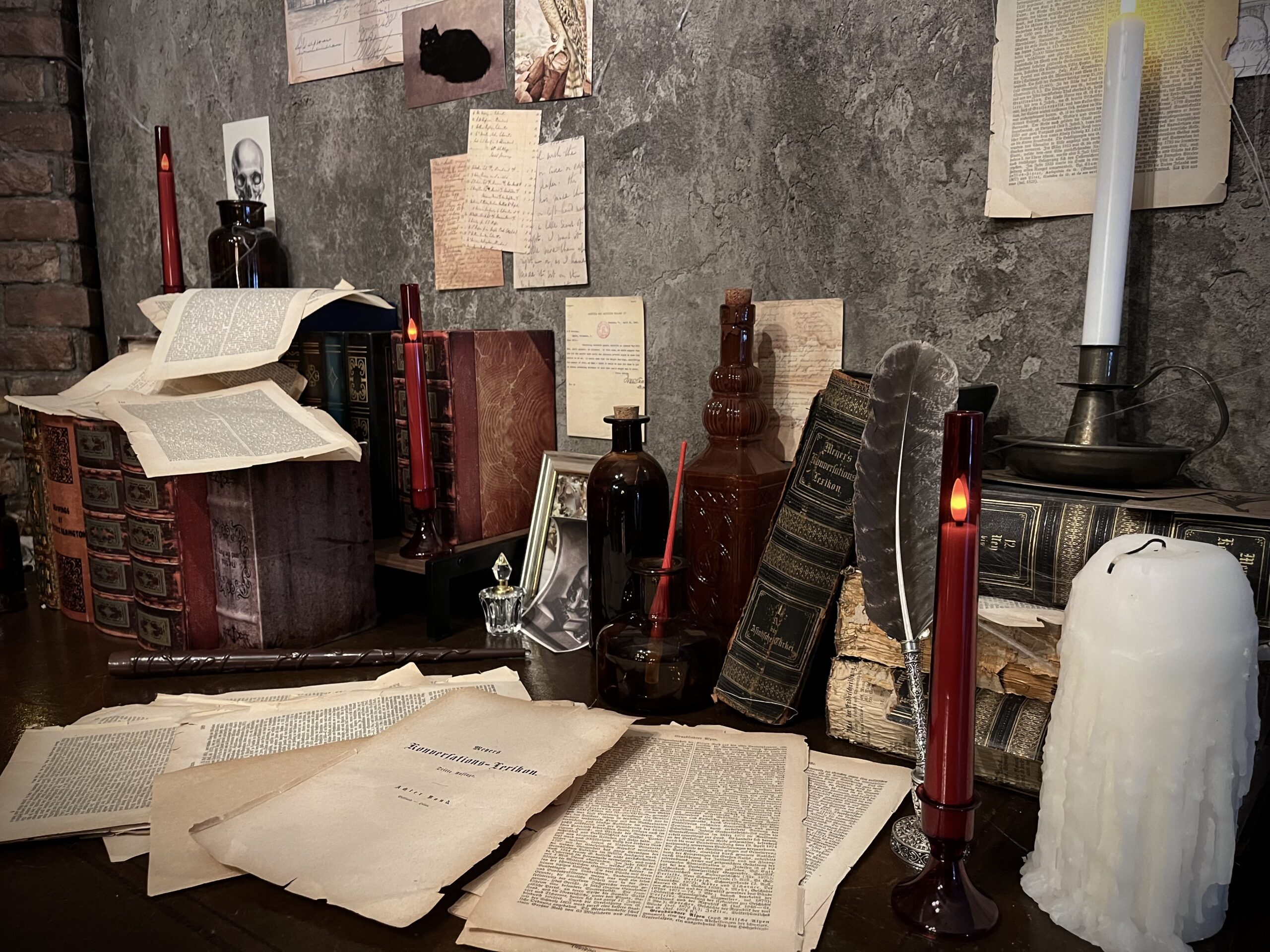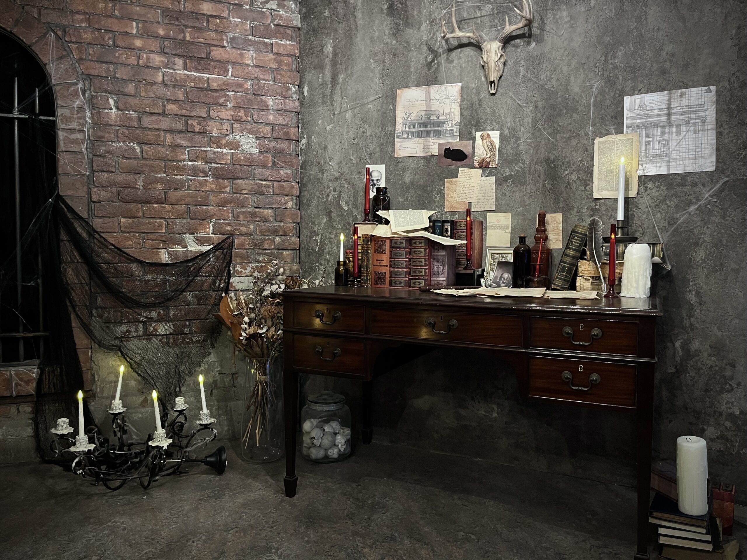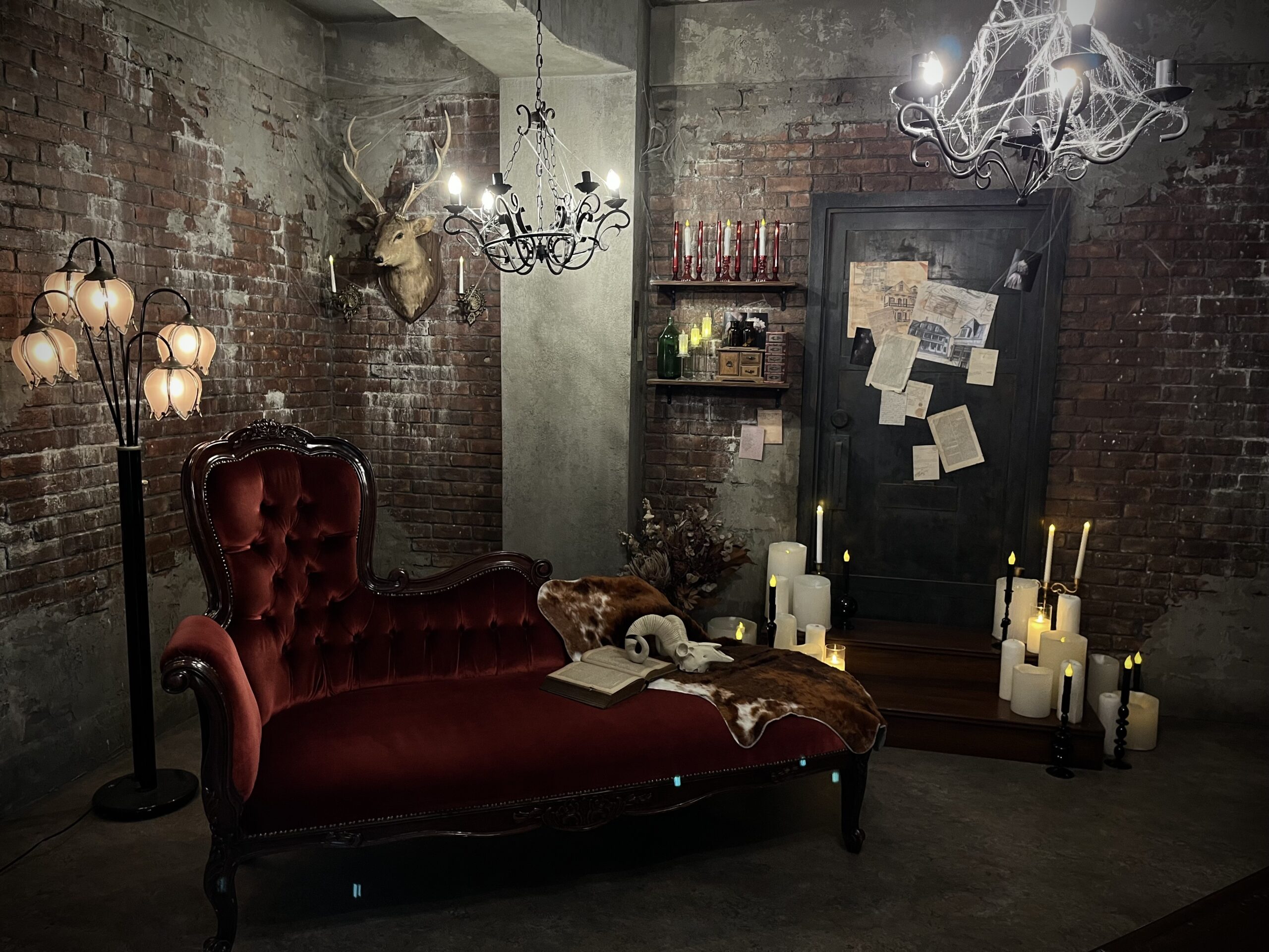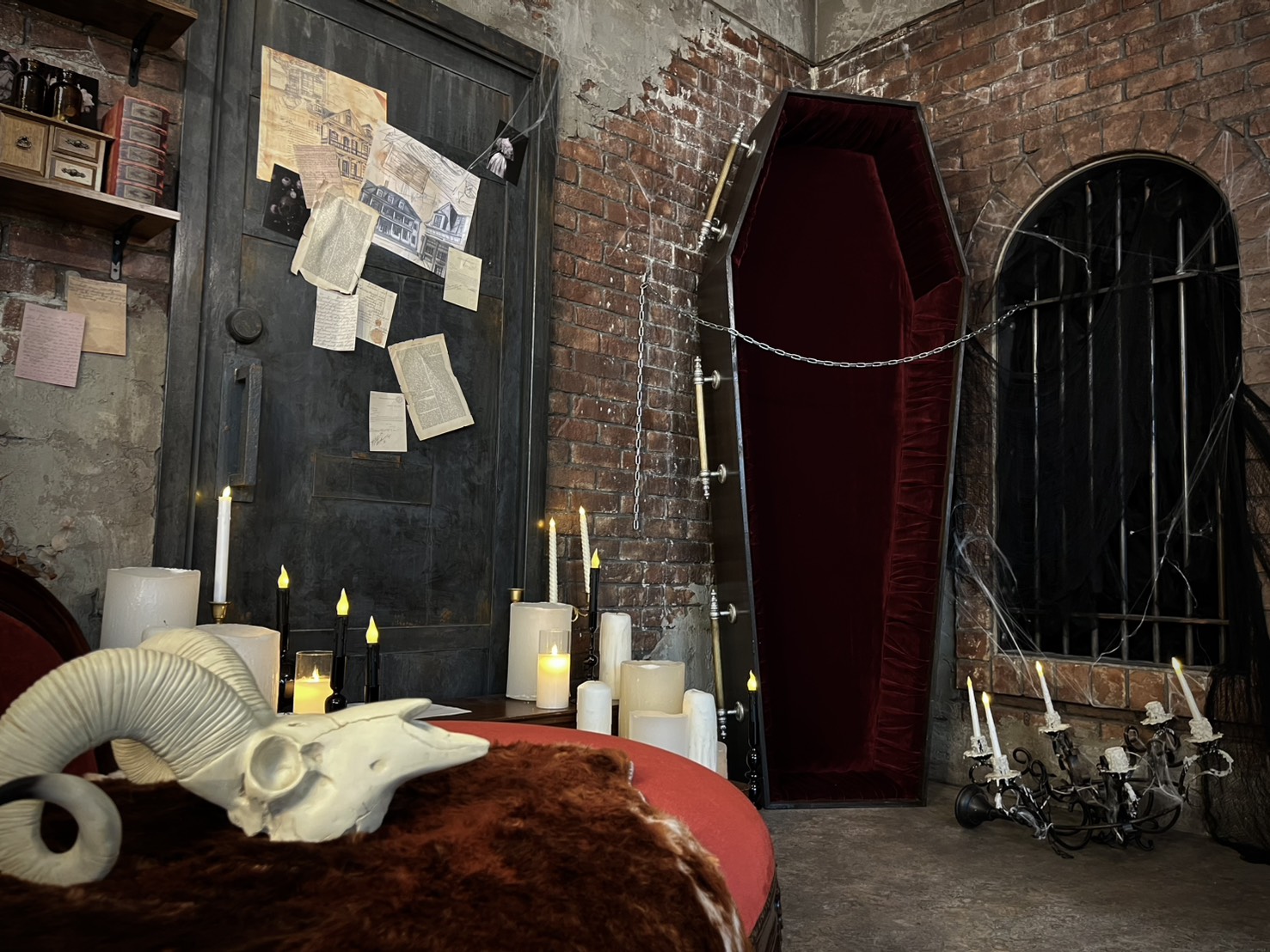 吸血鬼の館をイメージしたダークなセットで季節感のある撮影をお楽しみいただけます🦇